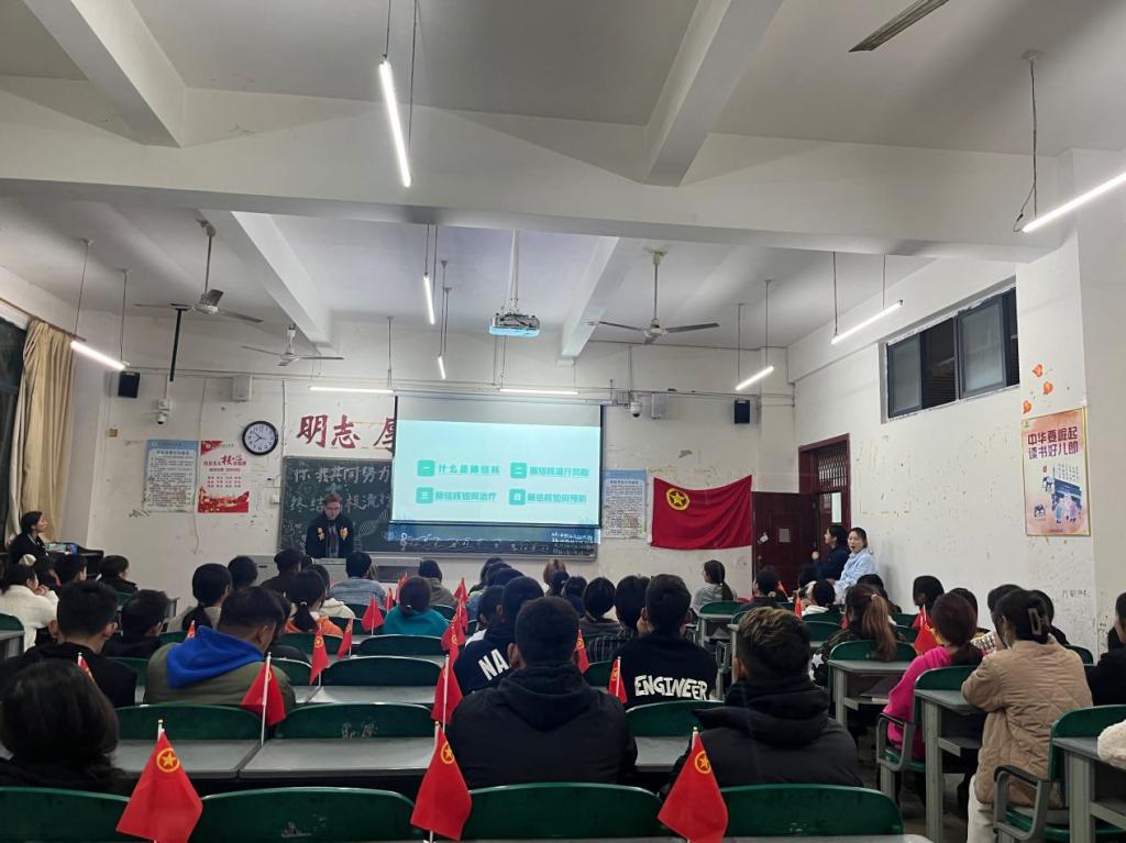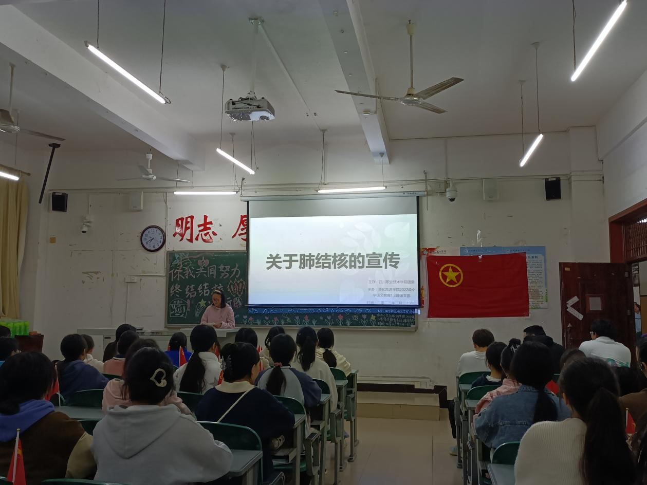 为普及肺结核知识,增增强同学们的防病意识和自我保护能力。文化旅游学院于3月26日晚,在尚学楼B区开展第三次“你我共同努力,终结结核流行”的团日活动。文化旅游学院22级全体班级共同参与此次活动。