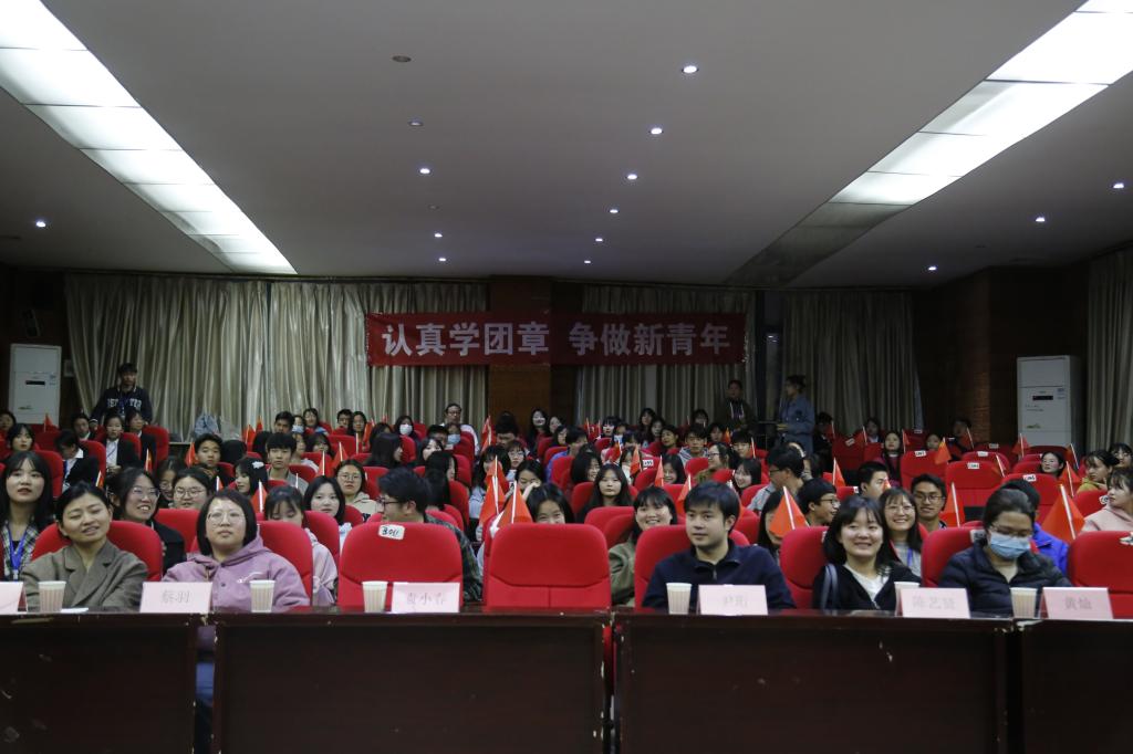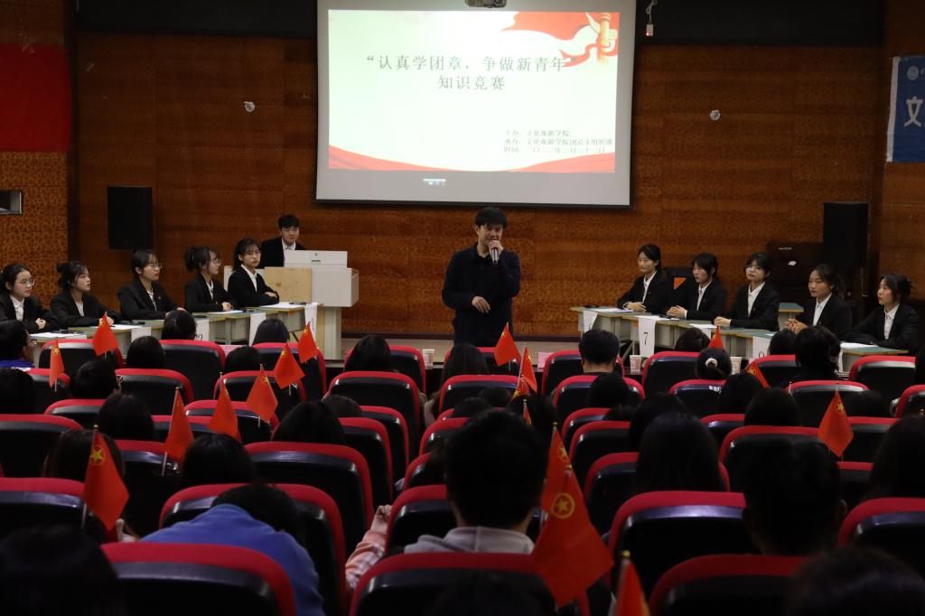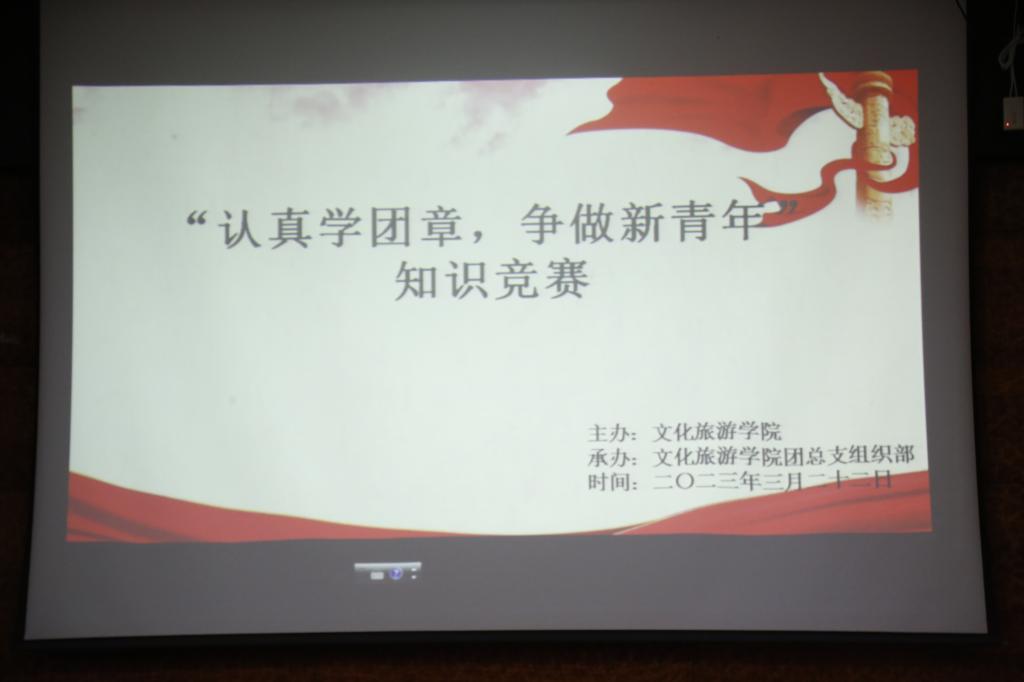 为加深同学们对中国共产党和共青团理论知识的认识,展现学生积极向上的精神风貌,3月22日,由文化旅游学院主办,文化旅游学院团总支组织部承办的“认真学团章,争做新青年”知识竞赛在经典鉴赏厅顺利举行。文化旅游学院团总支书记尹珩,教师代表蔡羽、衡媛、黄灿、陈艺贤出席本次活动,21级团学干部及22级新闻专业部分同学观看此次比赛。