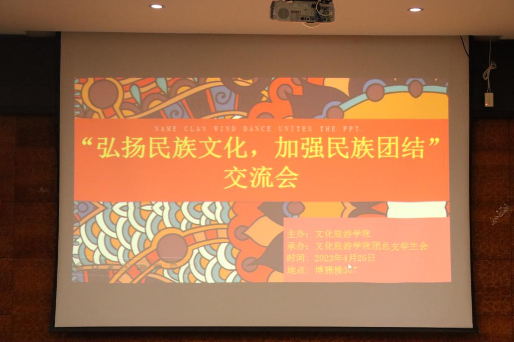 为了促进各民族文化交流和增强民族凝聚力,5月29日,由文化旅游学院主办,文化旅游学院团总支学生会承办的“弘扬民族精神,加强民族团结”主题交流会在明志楼经典鉴赏厅成功举办。21级团学干部及22级部分同学参加此次活动。