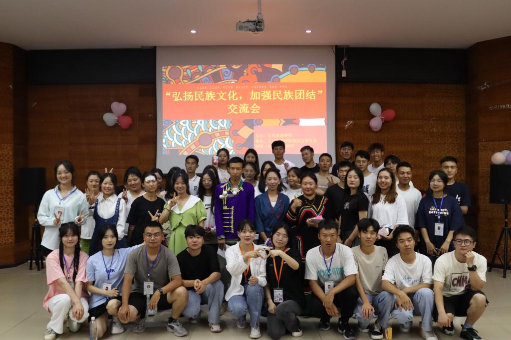 活动在主持人的精彩开场白下拉开了序幕。首先,同学们以即兴交谈和民族歌曲的方式分享了自己家乡的文化,展示了各民族独具风采的特色。接着进行了趣味小游戏,如你画我猜、有奖竞答等,引得现场欢声笑语,气氛不断活跃。在活动的感染下,同学们深深感受到了民族文化的魅力,纷纷分享了自己家乡的文化。最后,同学们合影留念,为本次交流会画上了完美的句号。