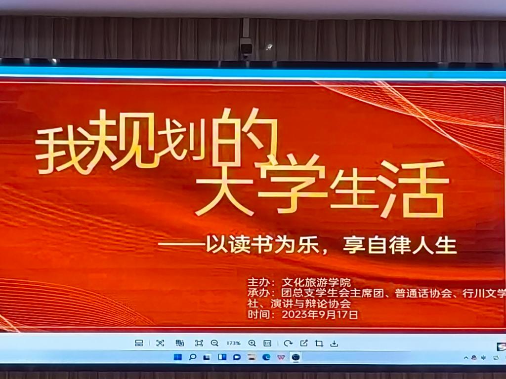9月17日,由文化旅游学院主办,团总支学生会主席团、普通话协会、行川文学社、演讲与辩论协会承办的“我规划的大学生活,以读书为乐享自律人生”的演讲活动在博雅楼M103顺利举行。文化旅游学院团总支书记尹珩受邀出席,团总支学生会学生干部、协会负责同学、班级助理及演讲选手共同参加。
