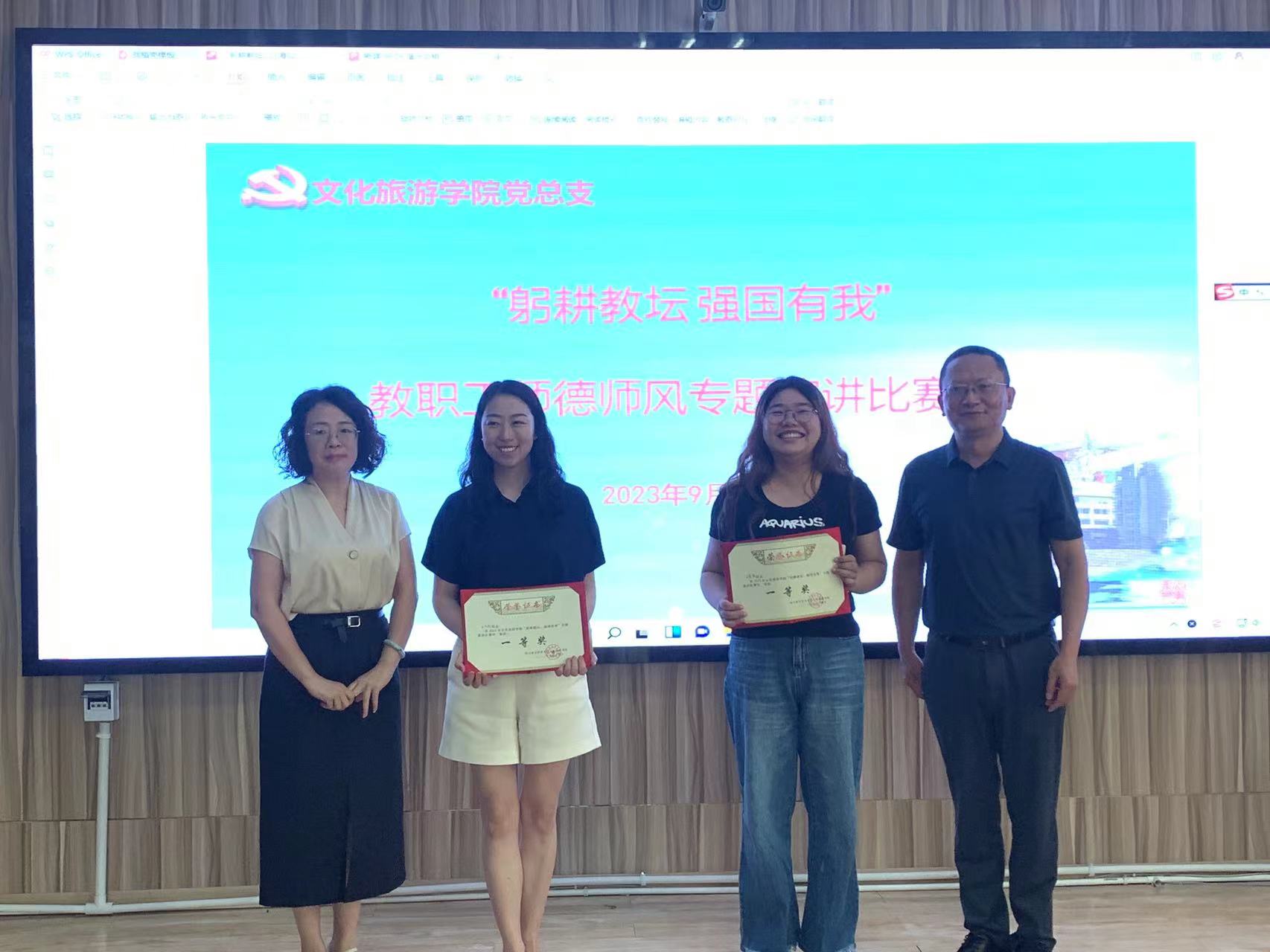 本次比赛参赛选手由各教研室共同推选10名青年教师代表参赛。各位参赛老师紧紧围绕“躬耕教坛,强国有我”教职工师德师风这一主题,结合工作生活中的感想、体会,以及身边人真实发生的事讲述自己对师德师风的感悟,演讲风格各不相同,均赢得现场观众阵阵掌声。经过激烈的角逐,旅游教研室王文俪、小学语文教研室王倩倩名列前茅,获得一等奖,将代表学院参加学校“躬耕教坛,强国有我”教职工师德师风专题演讲比赛决赛。