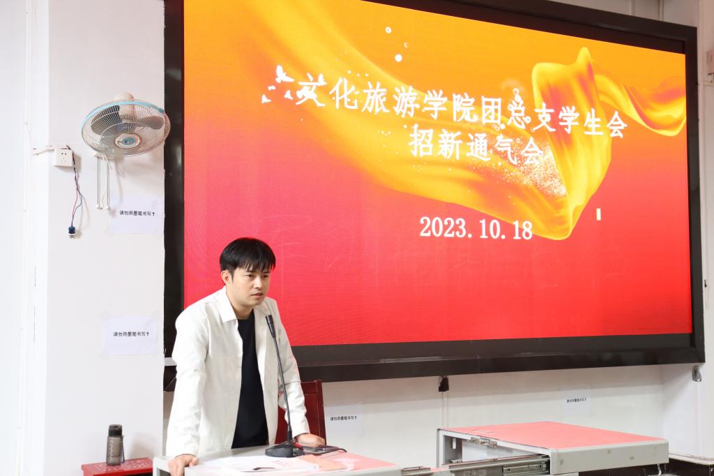 为了让2023级新生更加了解文化旅游学院、了解团总支学生会工作,同时也给刚参加招新面试的新生同学吃一枚“定心丸”。10月18日,文化旅游学院于尚学楼B109教室召开“文化旅游学院团总支学生会招新通气会”。会议由团总支书记尹珩主持,22级团学干部及部分23级新生参与会议。