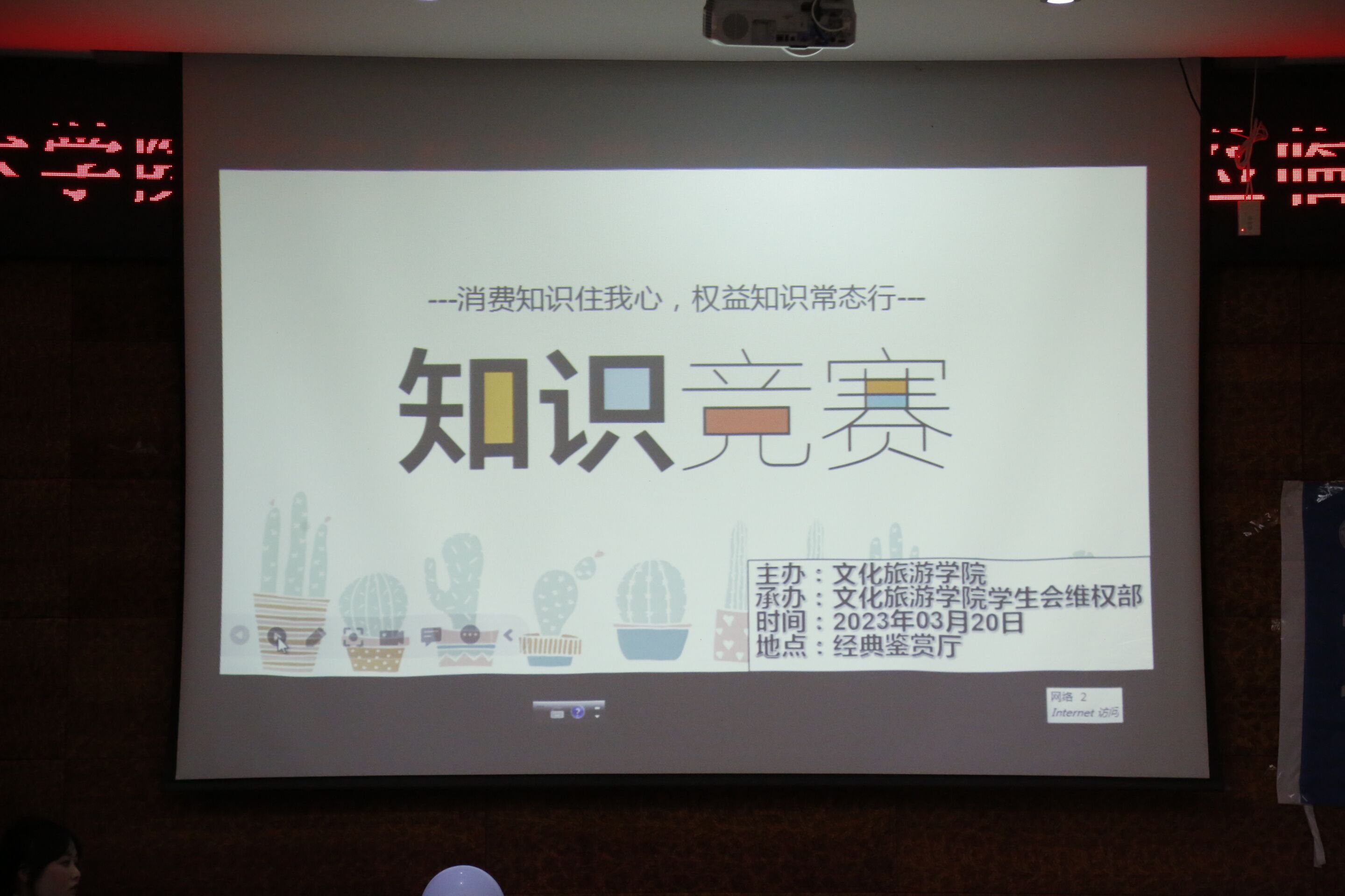 为增强同学们的维权意识,鼓励大学生积极维护自身合法权益,3月20日,文化旅游学院学生会维权部在经典鉴赏厅举办了“消费知识驻我心,权益维护常态行”主题知识竞赛。文化旅游学院教职工王倩倩、文柏力、唐志权出席本次活动,21级团学干部与22级旅游管理专业部分学生观看此次比赛。