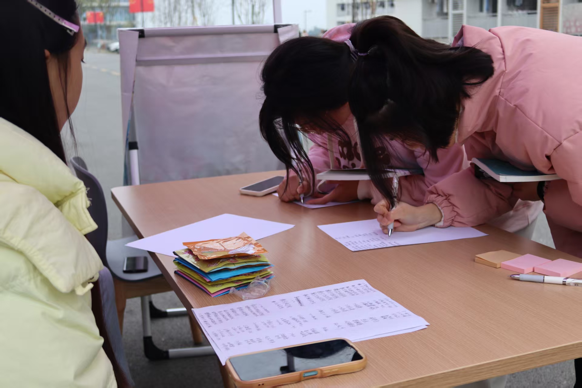 活动聚焦“感恩”核心,设置“寄语投递”与“答非所问”两大趣味环节。“寄语投递”区前,同学们领取纸笔,将对恩师的敬意、挚友的感激或是对自己的鼓励诉诸文字,署名或匿名后贴于展板,汇成一片承载真挚情感的“感恩墙”。参与寄语书写的同学还可获得抽奖资格,让文字的温度化作一份份小惊喜。