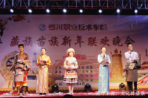 晚会全程使用藏汉语、苗汉语的双语主持形式,这不仅让汉族同胞齐聚庆祝藏苗民族新年,更让藏苗族同胞们在学院体会到家乡的温暖。