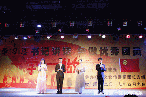 为深入学习“一学一做”,实现全面从严治党要求。2017年4月9日晚七点十分,由院团委主办,文化传播系团总支学生会组织部承办的主题为“学习总书记讲话,争做优秀团员”大型团日活动在我院二食堂三楼隆重举行。莅临本次活动的嘉宾有,文化传播系副主任唐元明,文化传播系团总支书记熊艳辉。我系2016级所有班级共同参加了此次活动。
