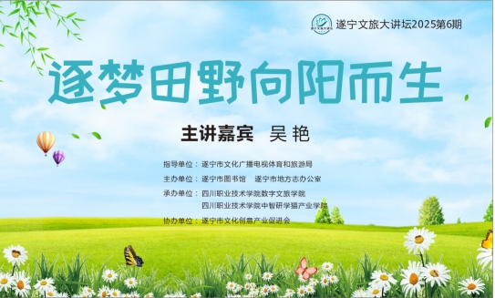 6月5日,一场聚焦乡村振兴实践与青年使命的专题讲座在四川职业技术学院龙凤产学研园区举行。本次活动以“逐梦田野 向阳而生”为主题,特邀全国青联委员、全国三八红旗手、全国农村青年致富带头人标兵、四川职业技术学院优秀校友、四川省鑫燕农业服务有限公司遂宁分公司执行董事吴艳分享她从下岗女工逆袭为年产值千万的农业企业家、从创业者到乡村振兴引路人的奋斗历程,为百余名师生呈现了一堂生动的“田野思政课”。本次活动由遂宁市文化广播电视体育和旅游局指导,遂宁市图书馆、地方志办公室联合主办,四川职业技术学院数字文旅学院、四川职业技术学院中智研学猫产业学院联合承办。