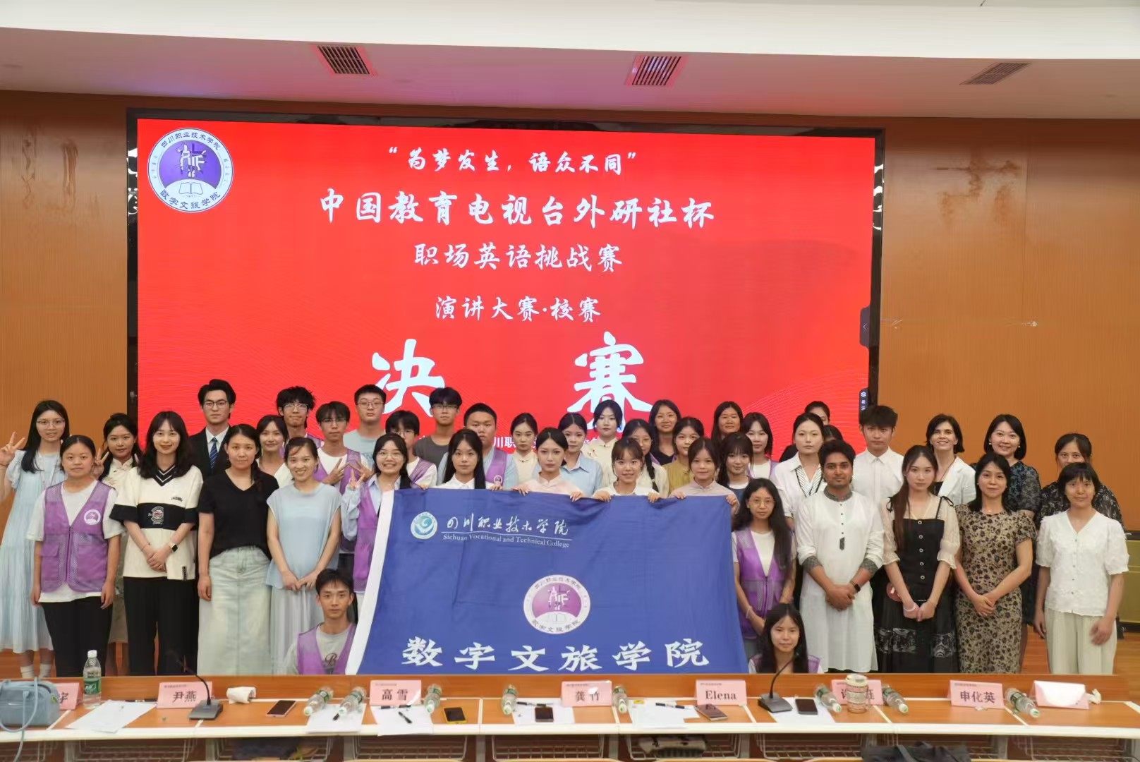近日,“2025‘中国教育电视台·外研社杯’职场英语挑战赛”四川职业技术学院校级决赛在龙凤校区B5—101教室圆满落幕。此次活动旨在提升学生运用英语进行涉外沟通、分析和解决问题、以及用英语讲好中国故事、传播中国文化的国际传播能力。同时强化职业教育类型特色,通过比赛引领职业院校英语教学改革与发展,促进学生英语应用能力的整体提高。