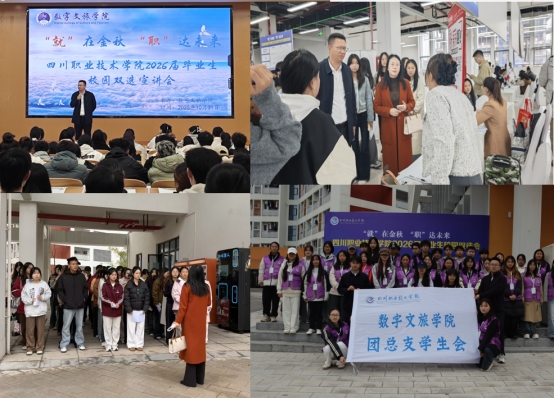 为扎实推进2026届毕业生就业工作,搭建高质量就业平台,四川职业技术学院于11月1日在河东校区与龙凤校区同步举办大型校园招聘会。数字文旅学院作为重要承办单位之一,高度重视此次活动。学院党总支书记朱春全、院长罗莹亲自部署并全程参与,与企业深入洽谈,为毕业生就业与校企合作搭建桥梁,确保了招聘会高效有序进行并取得丰硕成果。