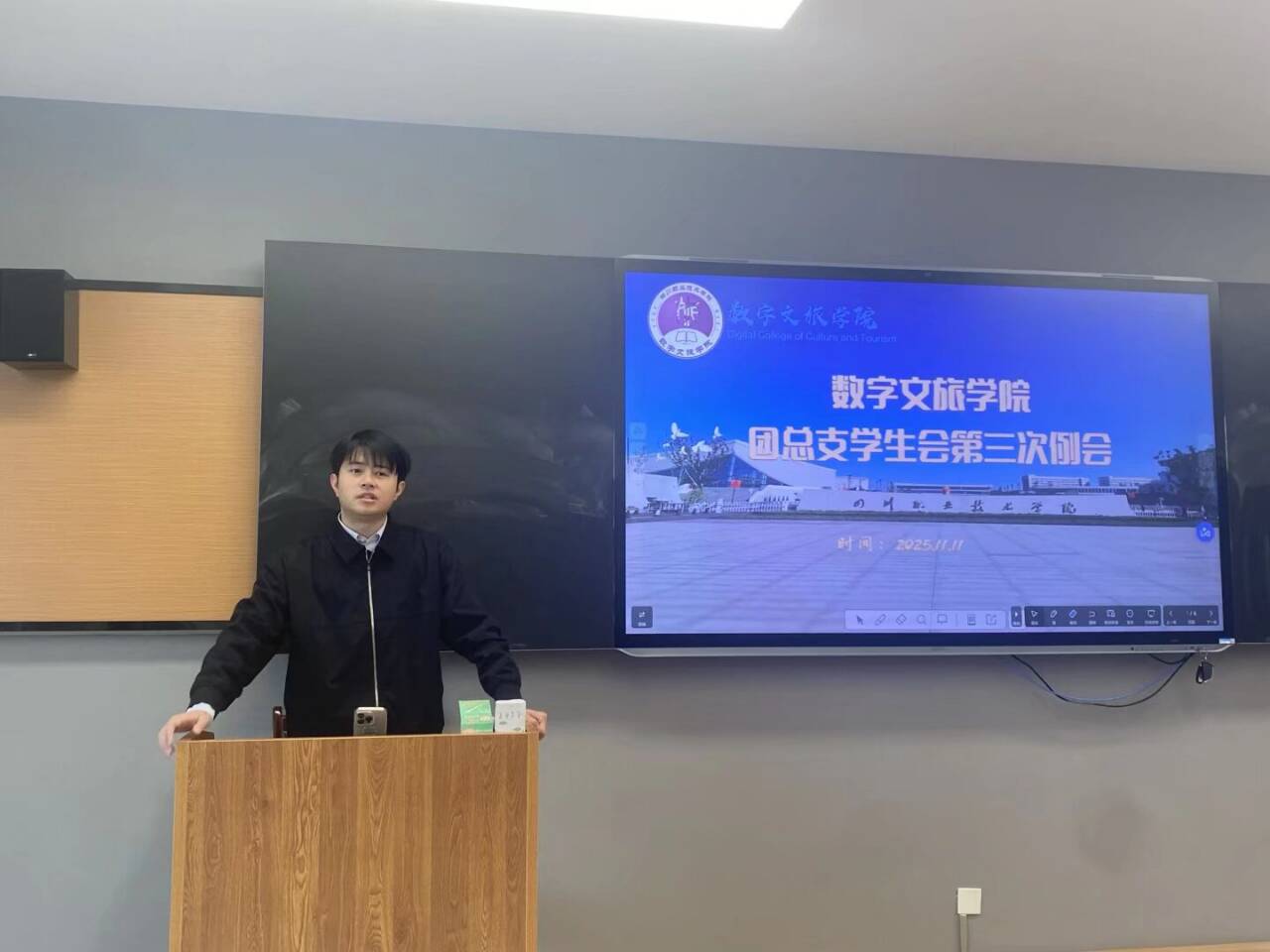 11月11日,数字文旅学院团总支学生会团第三次例会在B5-503教室隆重召开。团总支书记尹珩,24级团学干部及25级团学干事出席本次例会,会议围绕竞争环境认知、重点工作推进、个人成长发展等核心内容展开,为学院下一阶段高质量发展注入强劲动力。
