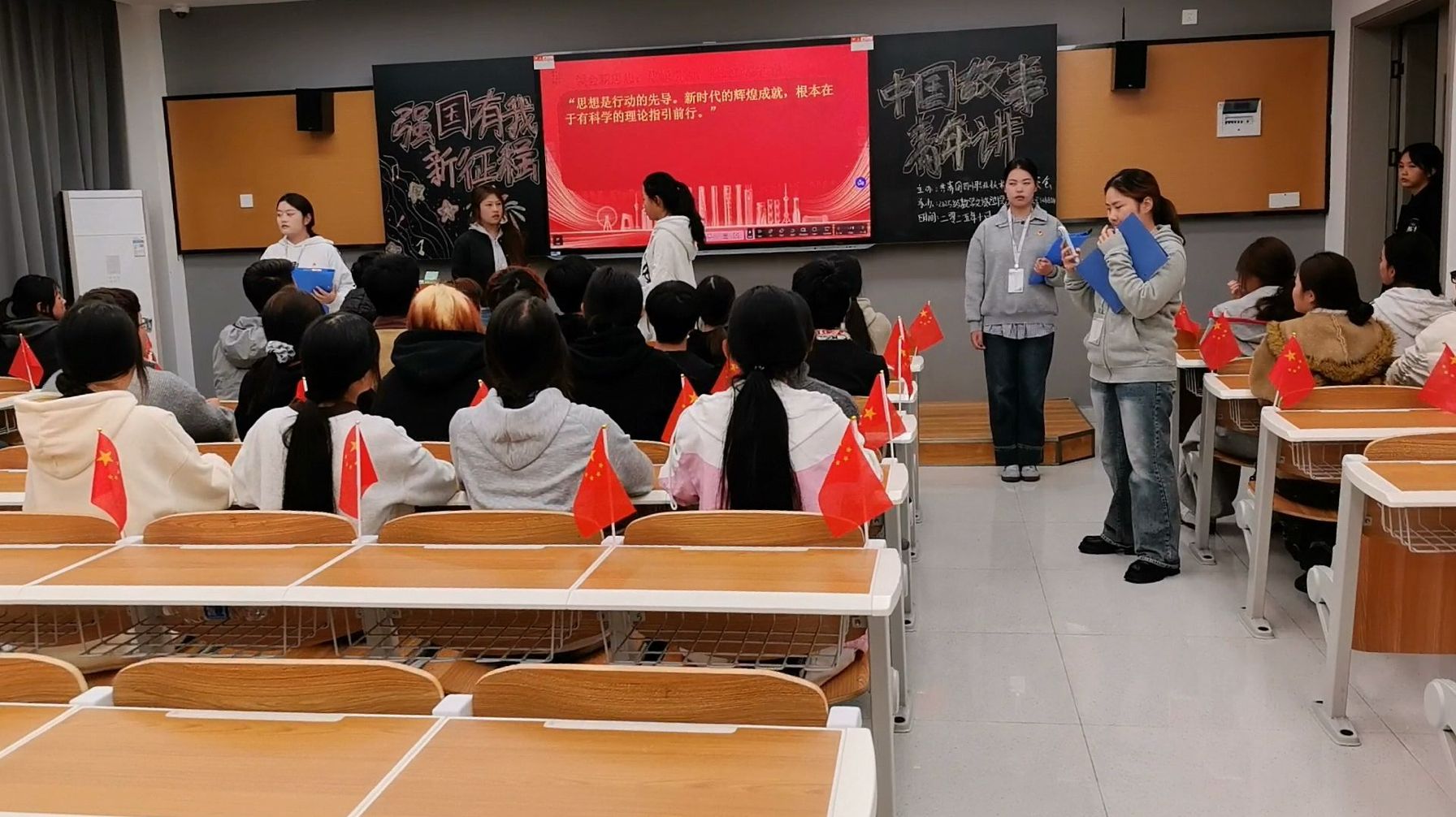 在同学们唱着庄重的共青团团歌中拉开了序幕。团支书首先带领大家学习了习近平总书记对青年一代的殷切寄语,强调青年是国家发展的生力军,讲述中国故事、传播中国声音是当代青年的责任与担当。随后,“青年宣讲团”成员依次登场,用生动鲜活的语言分享了一个个感人至深的中国故事:有革命先辈为民族解放抛头颅、洒热血的红色传奇,有科研工作者攻坚克难、勇攀高峰的创新故事,也有青年志愿者投身公益、助力乡村振兴的青春实践。
