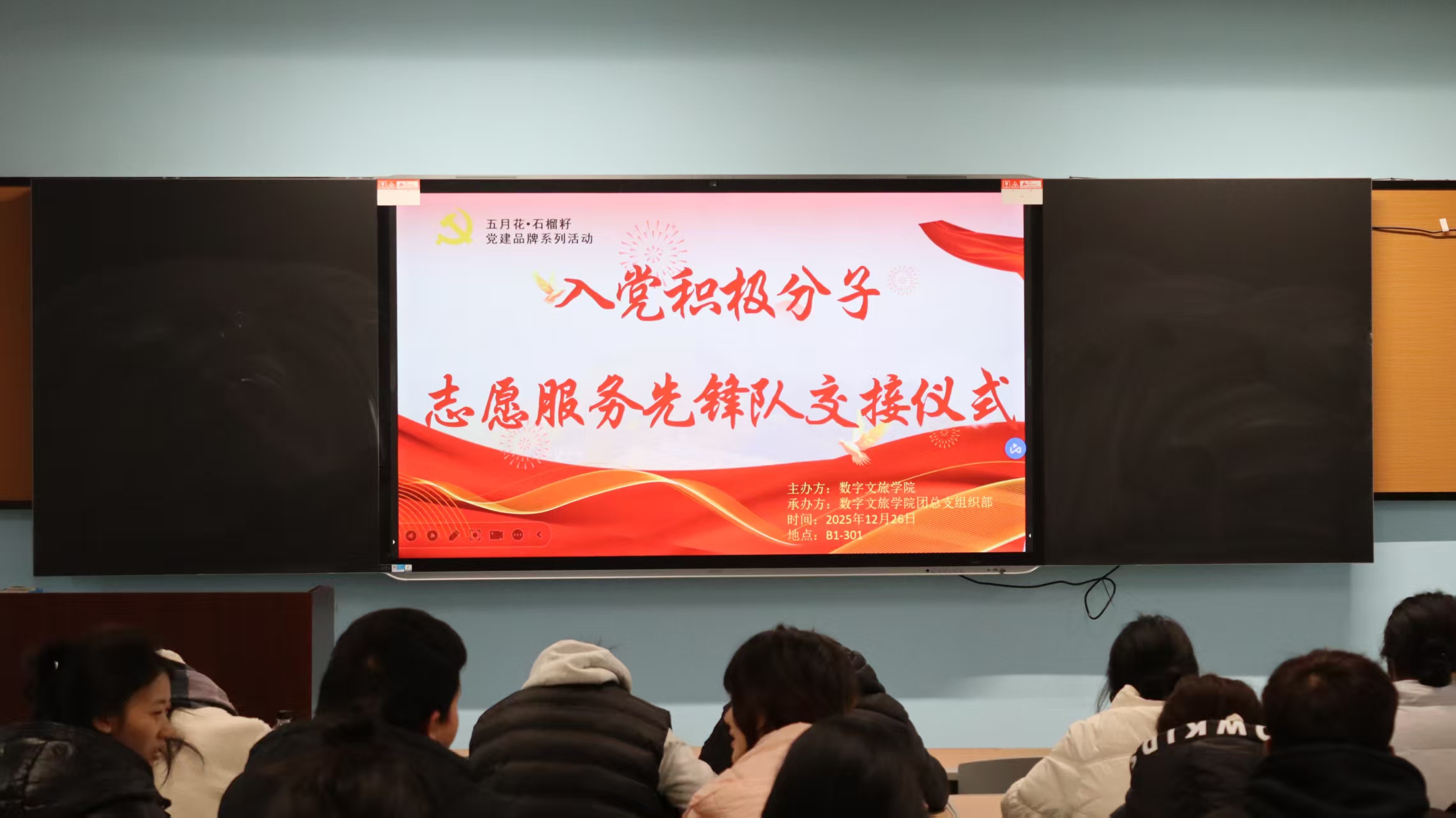 12月20日中午12时40分,由数字文旅学院主办、数字文旅学院党总支组织部承办的入党积极分子先锋队交接仪式在B1-301教室庄严举行,参与活动的有学院学生党支部书记尹珩、组织员杨兰以及24级全体入党积极分子。仪式在庄重而热烈的氛围中展开,标志着新老队员责任的传承与使命的接力。